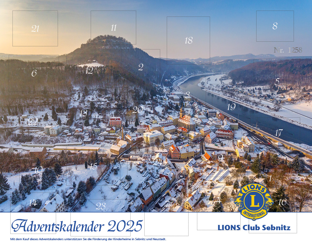 Alle Jahre wieder kommt die Weihnachtszeit und mit ihr der Advents-kalender vom Lions Club Sebnitz. Ab der KW40 ist der Kalender in der Auslieferung an die teilnehmenden Geschäfte und Sponsoren. Mit Spannung werden die Hauptgewinne erwartet. Diesmal stehen am 24.12.2025 folgende Gewinne an: